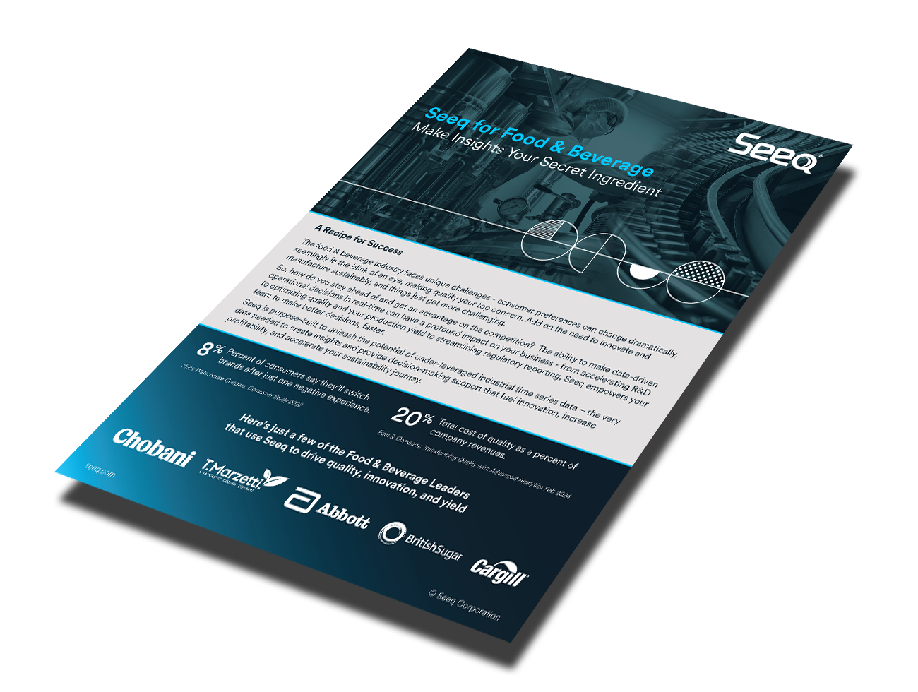 Seeq for Food & Beverage helps companies navigate challenges like shifting consumer preferences, quality control, and sustainability. By enabling real-time, data-driven decisions, Seeq supports R&D, optimizes quality and production yield, and streamlines regulatory reporting, driving innovation and profitability.